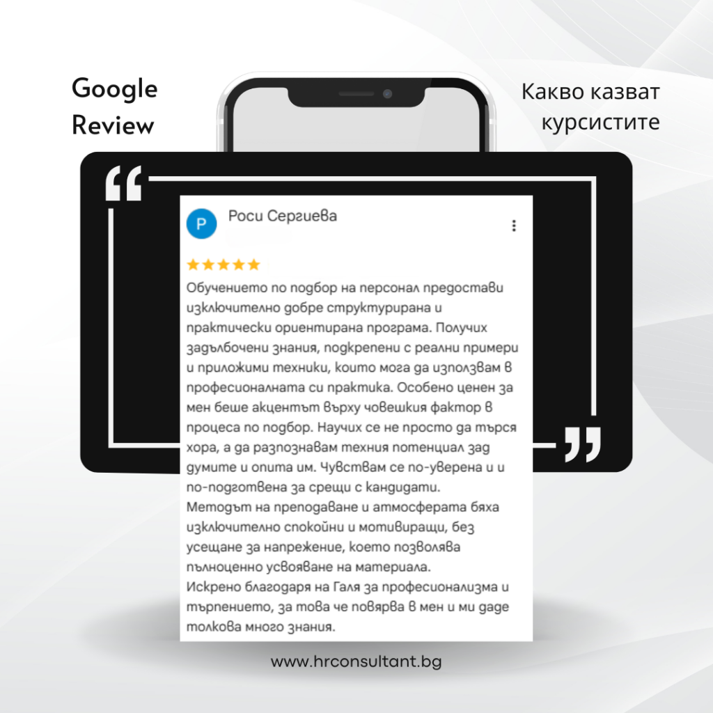 За всеки HR професионалист, който иска да напредва в кариерата си в областта на подбора на персонал, инвестирането в специализирани обучения и развитието на ключови умения за наемане не е просто логична стъпка, а стратегическа необходимост за постигане на професионален успех и конкурентоспособност.
